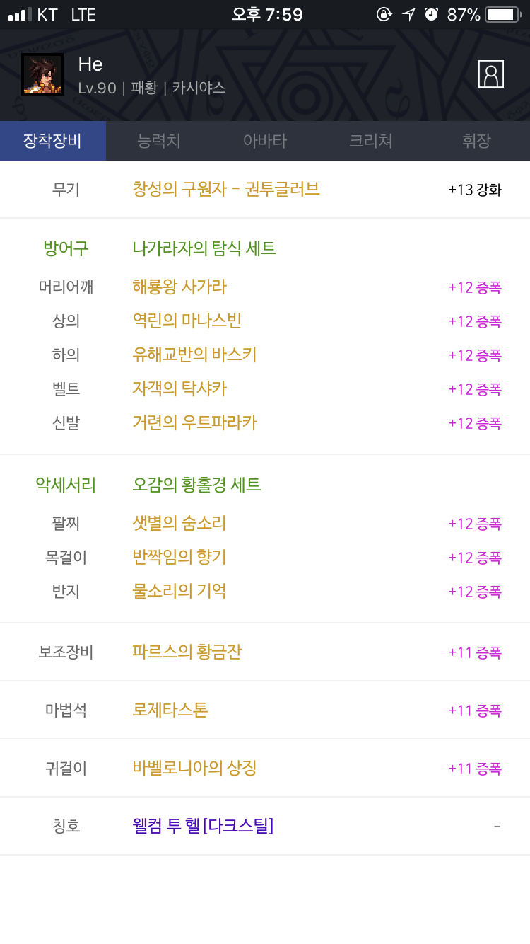 공대장이었던 길드원 분이 딜러로써 가능한지 자문을 구하더라 필자의 스펙은 이러하고 딜 안나온다고 사실대로 말했다 거절한후에 공대장 길원이 웃길래 왜그러냐 했더니 그 패황한테서 계속 귓이 온다고 하더라 내용은 인성이 터졌다니 어쩠다니 뭐 공대장 템 보고 뭐라고 하던데 당시 공장템이 4100/22/23 택벨 우요 세라핌인 걸로 봐서 충분한 스펙인데도 뭐라 하더라고 말했다 같은 패황이지만 너무나 잘 알기에 자신의 현 상황 부정적인 단어로는 분수를 알고 행동하는 것도 (솔딜 말고 시너지 딜러 신청입니다 했으면 웃으면서 하나의 에피소드로 넘어 갔을 상황이지 않았을까 싶다) 현재 안좋은 우리의 사정을 즐기는 방법이지 않을까 생각이 든다 이상 패황 He 였습니다 from Mobile