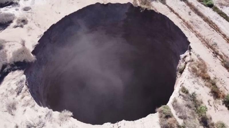 칠레 북부에서 초대형 싱크홀이 발견돼 화제입니다.수도 산티아고에서 약 660km 떨어진 구리 광산 인근인데, 어마어마한 크기의 어두운 구멍이 보입니다.