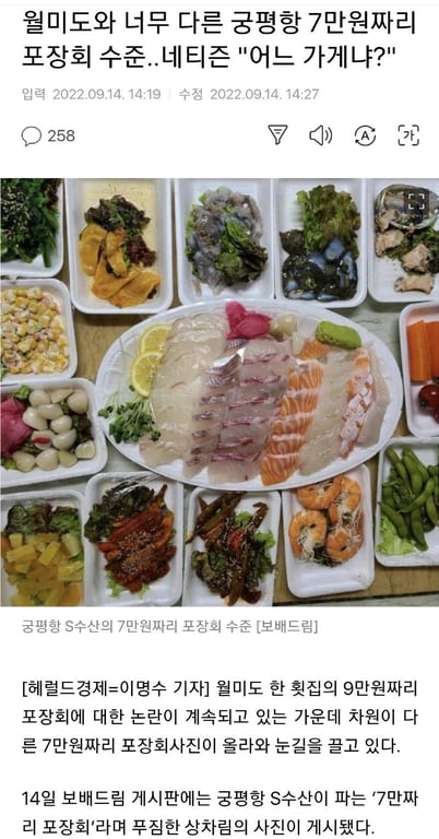월미도와 너무 다른 궁평항 7만원짜리 포장회 수준..네티즌 "어느 가..보배 눈팅 언론사들 많은 듯 전 보배 들어온지 얼마 안되어 모르는데 영양력이 대단 하네요 ㅋ