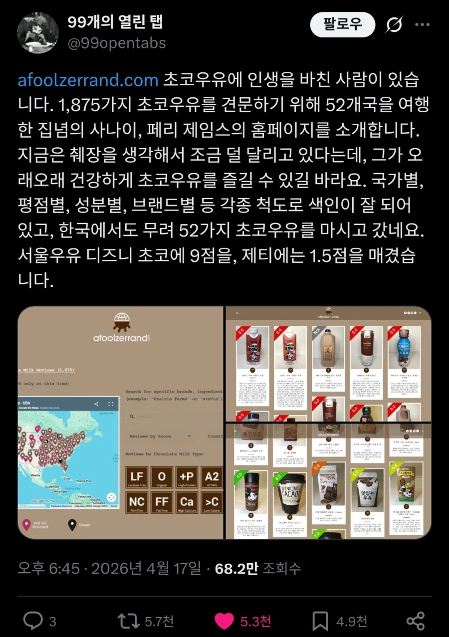[유머] 52개의 나라를 다니며 1875가지 초코우유를 리뷰한 사람from Mobile
