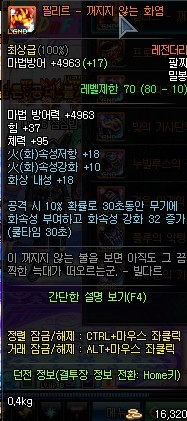 마찬가지로 속강이 붙었지만 힘이안붙어서 다크루브보단 (별차이도 안나지만)후지다 ps. 두아이템 공통사항으로 맞으면 데미지를 주는 옵션이기떄문에 마테카와 아그네스에서 제발 뺴주세요 하는 아이템이다. 마테카같은경우 여러대를 패는 패턴을 화형의모로스낀놈한테쓸경우 파티원들이 녹아내린다. 다크루브도 옵션을 잘맞으면 역시 녹아내린다. 주의요망템 에픽