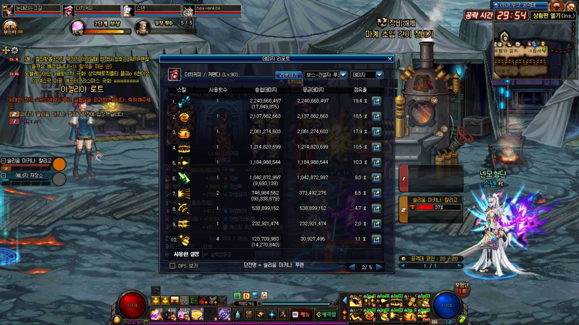 초대륙소마+이단+세라핌+ 커맨더 저번주 화요일에간 루크딜표입니다. 보시면 패건딜이 저정도 박힌다고 말씀드리네여... 평타가 이정도 넣으면 패건딜이 이정도 박히다고 보시면됍니다. 패건을 배우시면 평타치실때 뽑는 속도와 지속딜 타임에 내가 평타를 어느정도 넣으냐에 따라 딜이 엄청날수도있습니다. 다만 시간이 오래걸리는경우가 있으시지만 배워 두시면 나쁘지는 않으실겁니다. 오타도 많은 이런글 읽어 주셨어 감사합니다..^^7