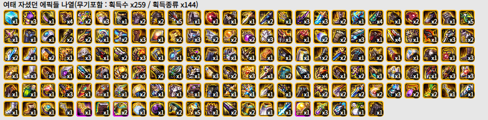 무기(모공), 하의(모공), 반지(스탯), 보장(증뎀)