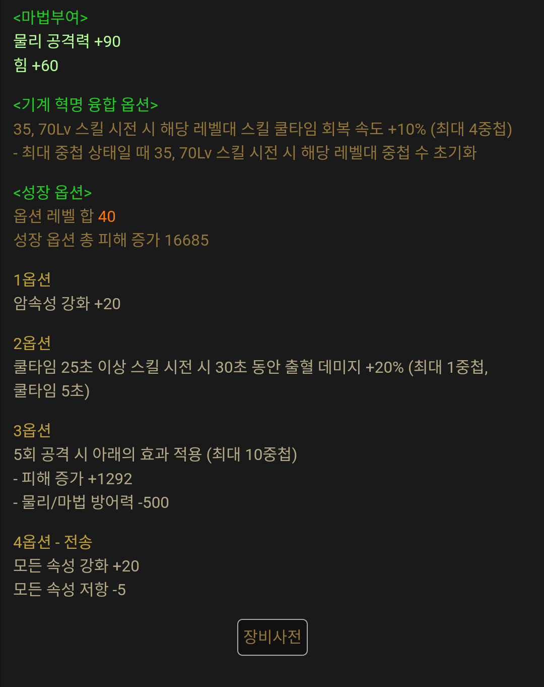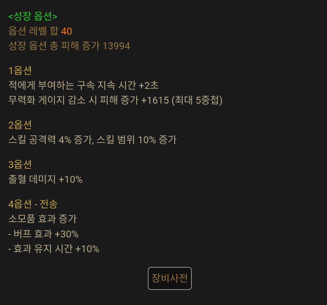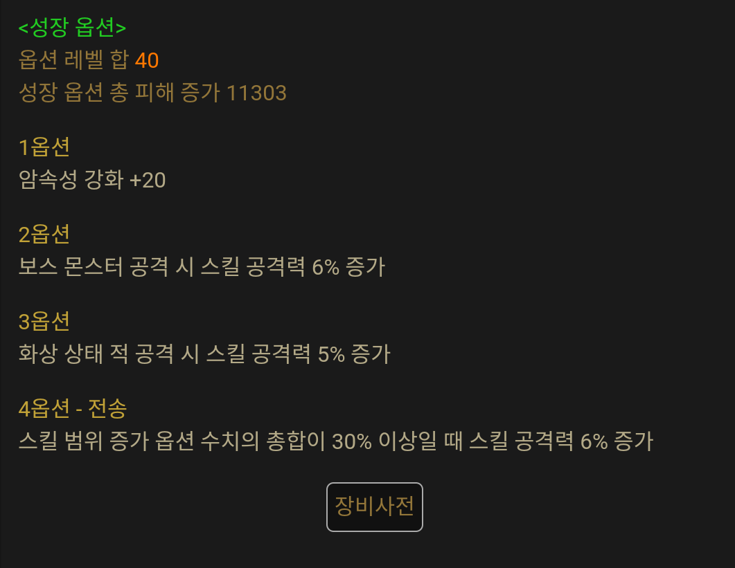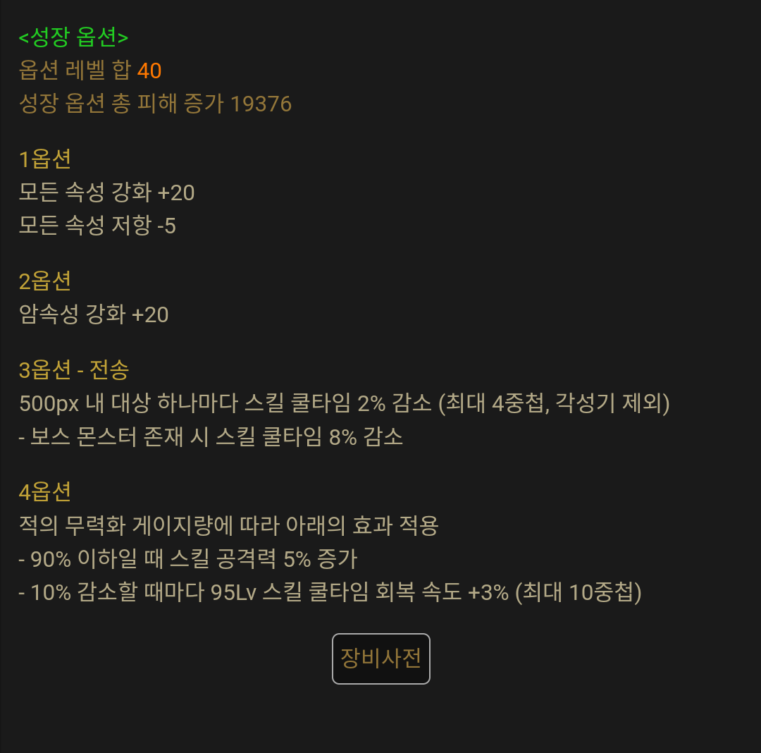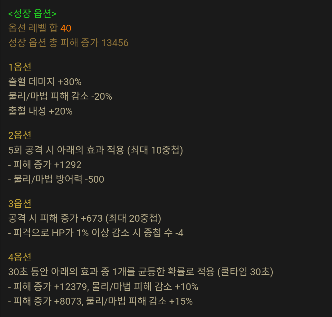 몇몇개 단속이나 고유옵 덜한게 있긴한데 이건 해당 부위 미기 먹으면 초월을하는쪽으로 생각할렵니다. 왜차큐 이제 슬슬 부캐 돌려야될거 같음.
