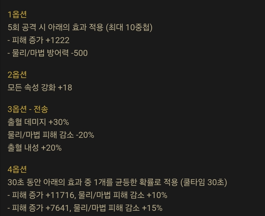 [잡담] 블베아도 종류 ㅈㄴ다양해졌네검신이랑 검귀가 블베아 3유효인게 맘에 안들어서 어제 상의 큐브질 매우돌렸는데 하위호환 4유효가 꽤 많아진듯 ㄲㄲ