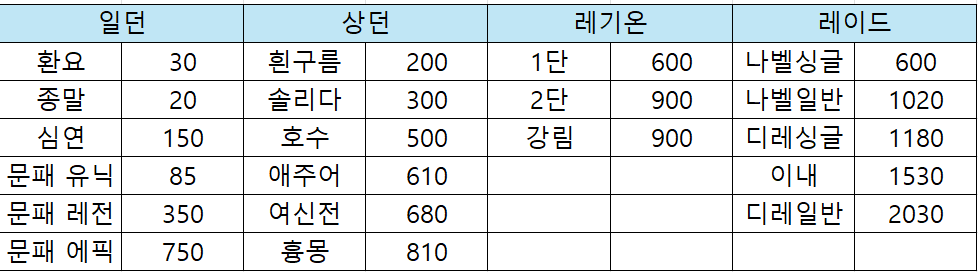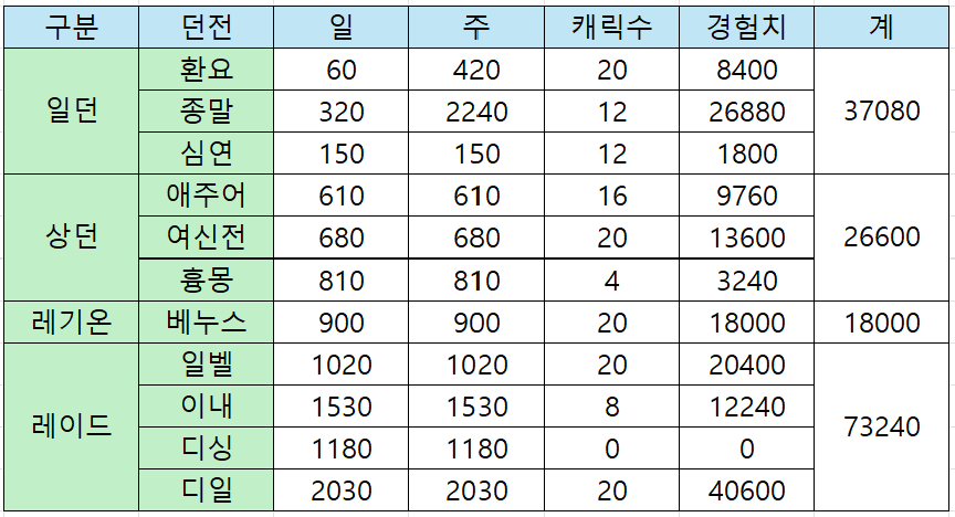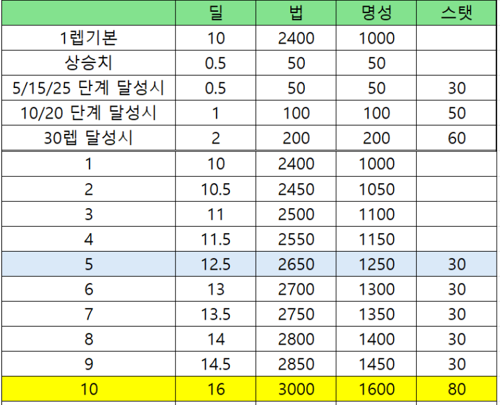 일던에서 2.4만을 채울 수 있으면 10랩 가능 상던 베누스 숙제 완료시 7~8랩 정도는 찍혀있겠네