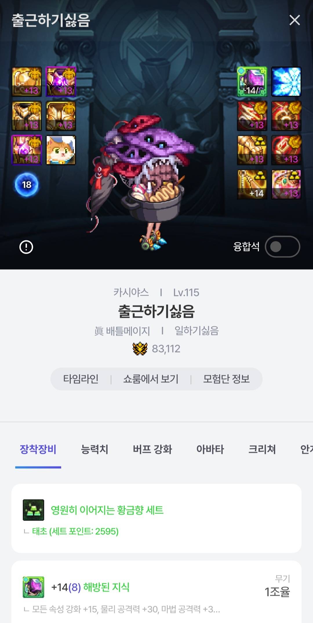 계귀역병 사서 2번째 부위도 올렸구 명성도 8.3 찌것서오 던응애라 이번주에 융화 19는 못할 거 같은데 다음주에 천천히 찍어야 하나 싶내오...