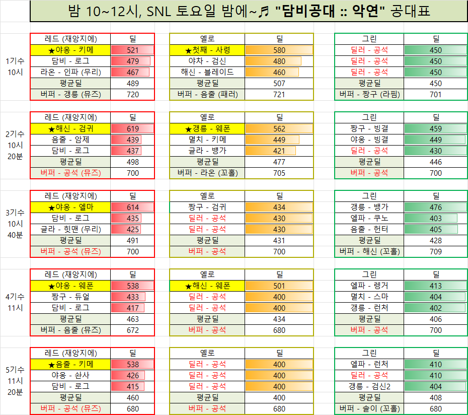 고정 / 반고정 / 용병 구함미다 4~5기수는 조율 & 지인 공대로 상황보고 편성 예정이라 좀 커트 낮게 운영해요 (400~/ 680~)