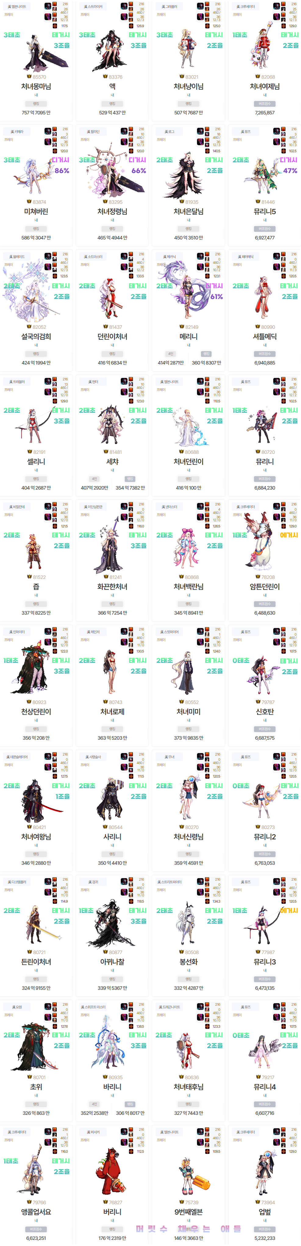 - ㆍ[정보] 크리쳐 갱신후에 11테아나 무지 역전된 세트, 캐릭...