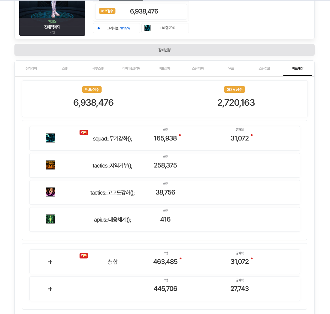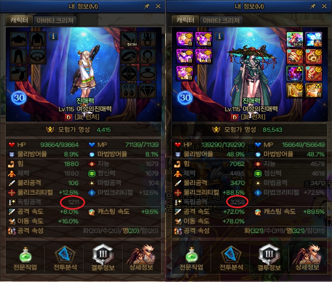 (계산기준) ![]() 115레벨 옷 다벗겼을 때 기준 독공 체크, 풀세팅 기준 확인, 올12증 극마부 세팅 기준